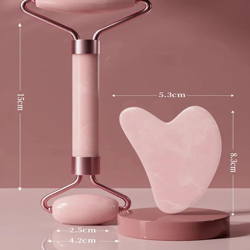 Unleash your bold and adventurous side with our Facial Body Massager Roller Jade Stone Massage Set! Crafted from natural rose quartz, our jade roller and gua sha tools offer a luxurious massage experience. Enhance your beauty routine and lift your face with the power of this set's massaging and stimulating effects!